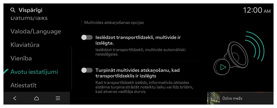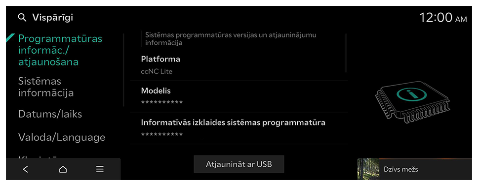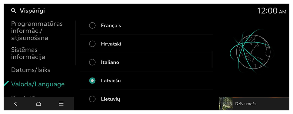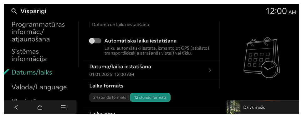 Laiks tiek iestatīts automātiski, izmantojot GPS (pamatojoties uz transportlīdzekļa atrašanās vietu) vai tīklu.