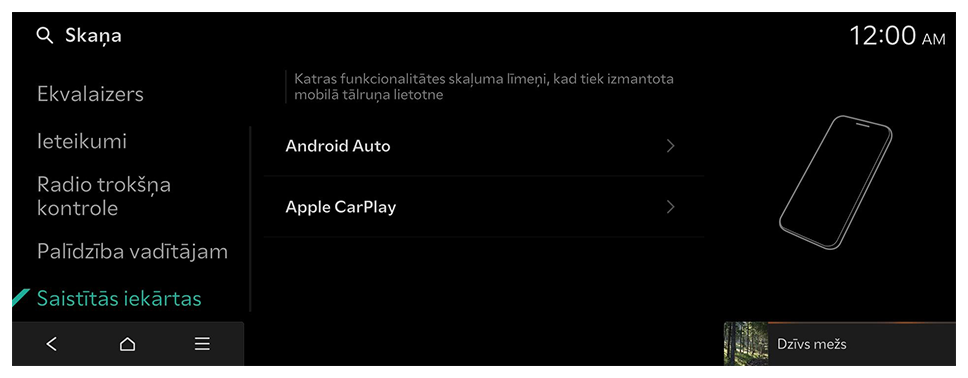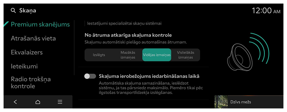 Skaļums tiek automātiski pielāgots atbilstoši transportlīdzekļa ātrumam.