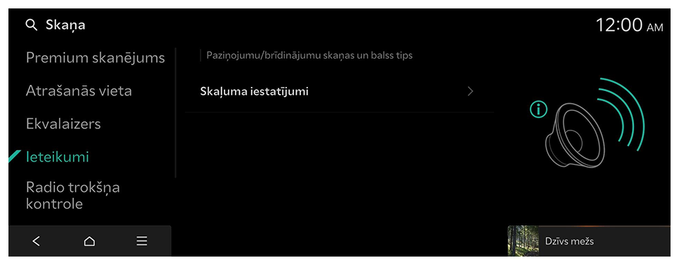 Tiek parādīts skaņas iestatījumu ekrāns.