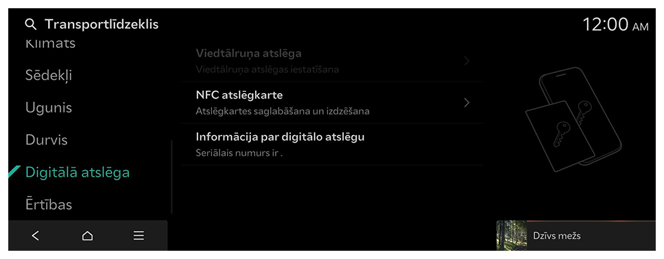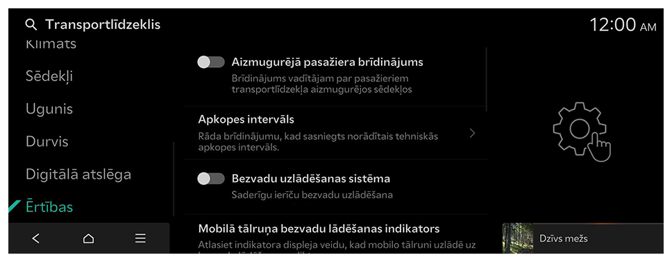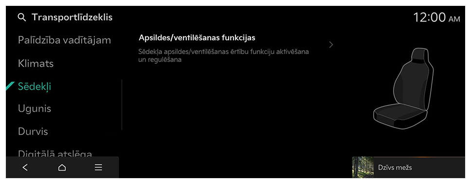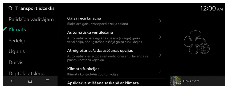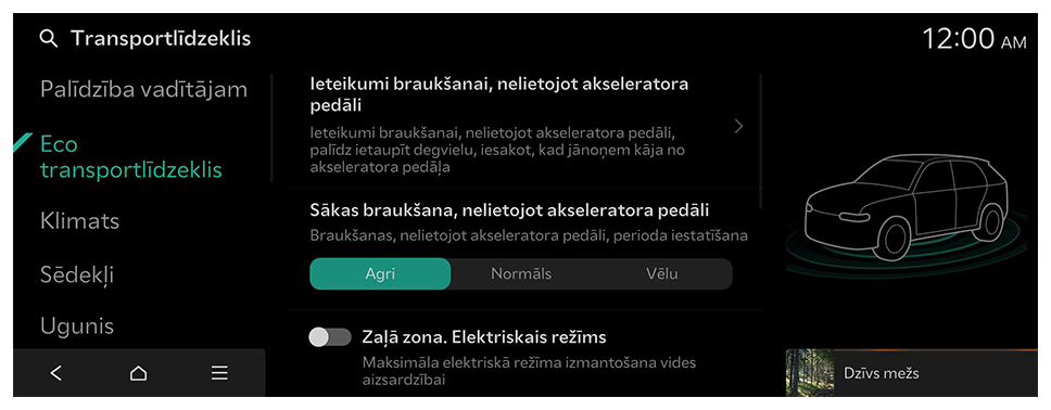 - Sākuma ekrānā nospiediet Iestatījumi ► Transportlīdzeklis.