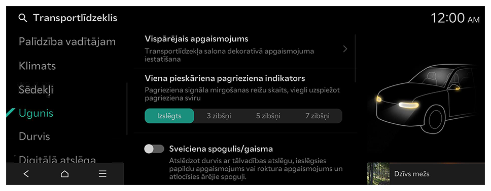 - Pieejamie iestatījumi var atšķirties atkarībā no transportlīdzekļa modeļa un specifikācijām.