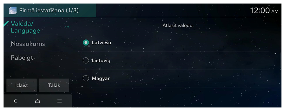 Tiek parādīts pirmā brauciena iestatīšanas ekrāns.