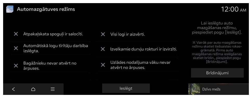 ]. Piemēram, ja tiek rādīta ikona manuāla manevra veikšanai attiecībā uz jumta logu, pārbaudiet jumta logu un pārliecinieties, vai tajā nav svešķermeņu, pirms sākat mazgāšanu.