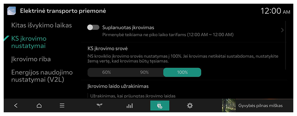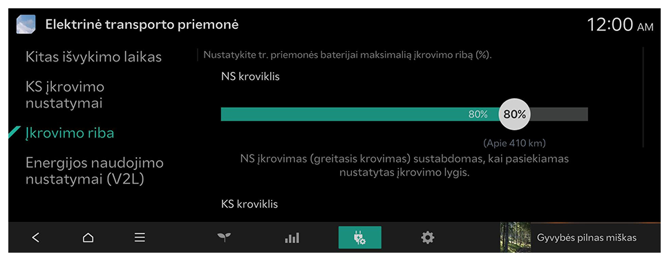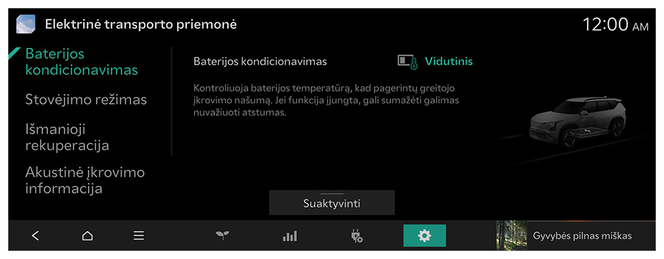 Kontroliuoja baterijos temperatūrą, kad pagerintų greitojo įkrovimo našumą. Jei funkcija įjungta, gali sumažėti galimas nuvažiuoti atstumas.