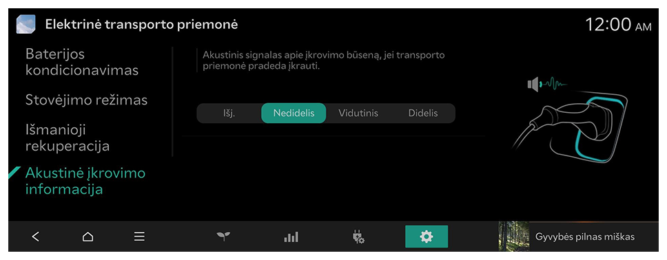 - Norėdami išjungti garsinę informaciją apie įkrovimą, paspauskite Išj..