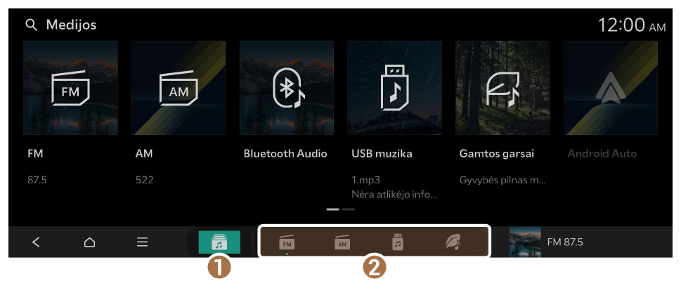 - Pradžios ekrane arba medijos ekrane paspauskite