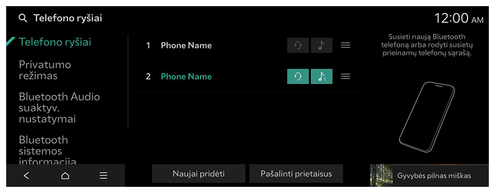 - Kad prisijungtumėte, išmaniajame telefone įjunkite „Wi-Fi“ ir „Bluetooth“, tada ieškomų „Bluetooth“ įrenginių sąraše pasirinkite automobilio sistemą.