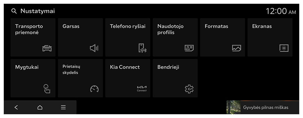 arba valdymo skydelyje paspauskite mygtuką [SEARCH], įveskite paieškos terminą ir pasirinkite elementą, kad būtų pradėtas vykdymas. - Pasiekiami nustatymai gali skirtis atsižvelgiant į transporto priemonės modelį ir specifikacijas.