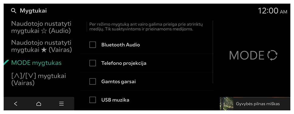 - Pasiekiami nustatymai gali skirtis atsižvelgiant į transporto priemonės modelį ir specifikacijas.