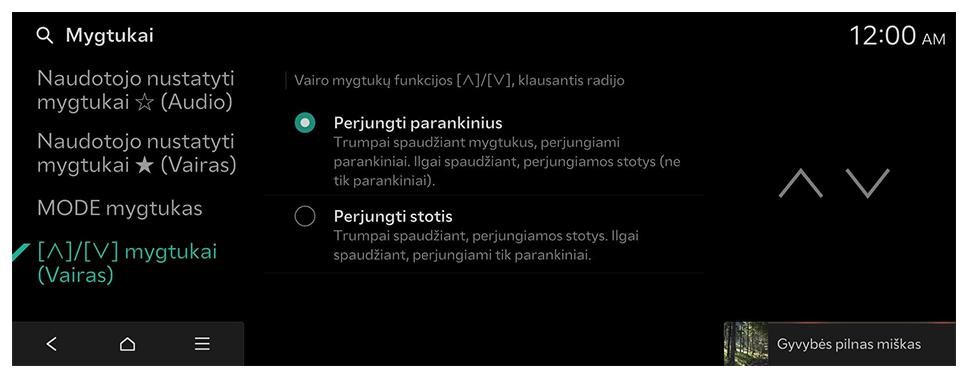 Konfigūruokite funkcijas, kurios bus aktyvintos paspaudus valdymo skydelio arba vairo mygtukus.