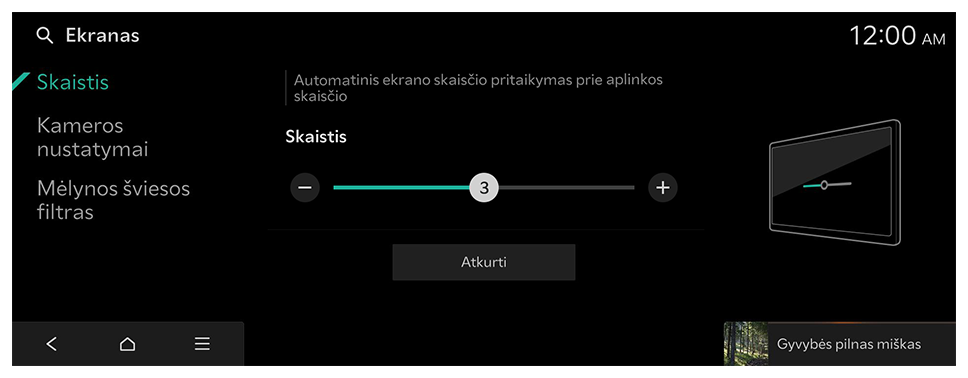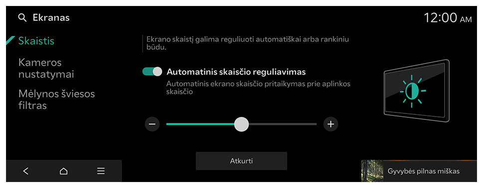 - Kad atstatytumėte visus ekrano šviesumo nustatymus į numatytąsias reikšmes, paspauskite Atkurti.
