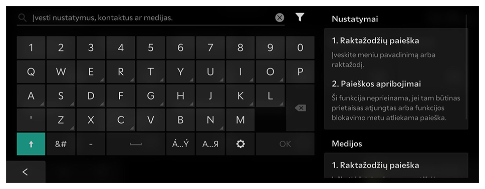 , jei ekrane rodoma piktograma. - Paieškos rezultatai pateikiami nuosekliai, atsižvelgiant į meniu struktūrą ir informaciją įvairiais režimais.