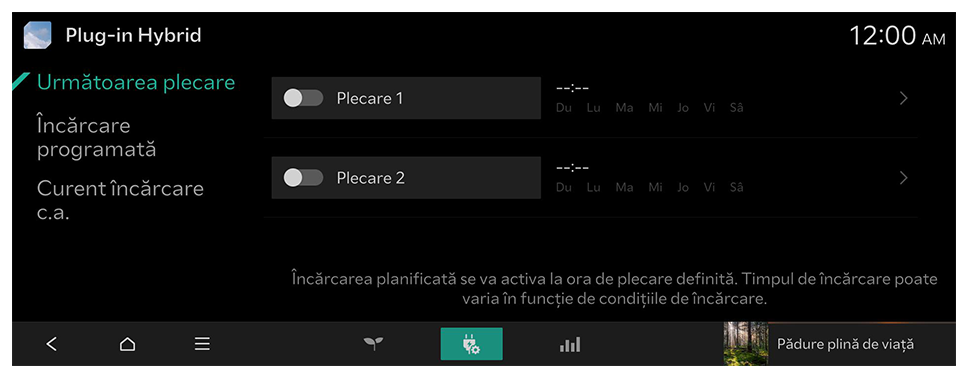 1. Setați următoarea oră de plecare. Consultați „Setare pentru încărcare.”