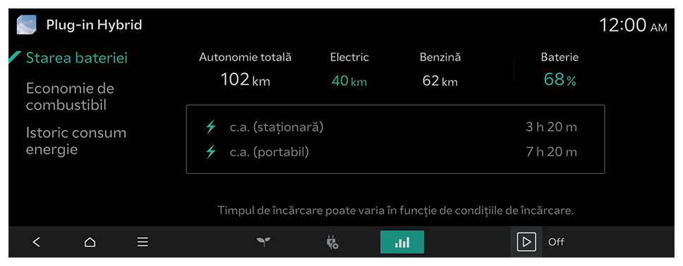 Ecranul Plug-in Hybrid oferă următoarele caracteristici și informații: