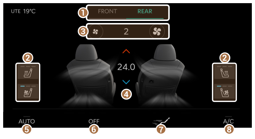 - Visa klimatinställningsskärmen för framsätet eller baksätet.