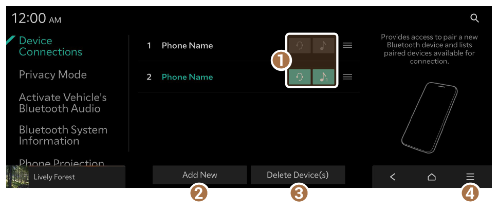 - Turn on Bluetooth on the Bluetooth device to connect and select the vehicle system from the list of searched devices.