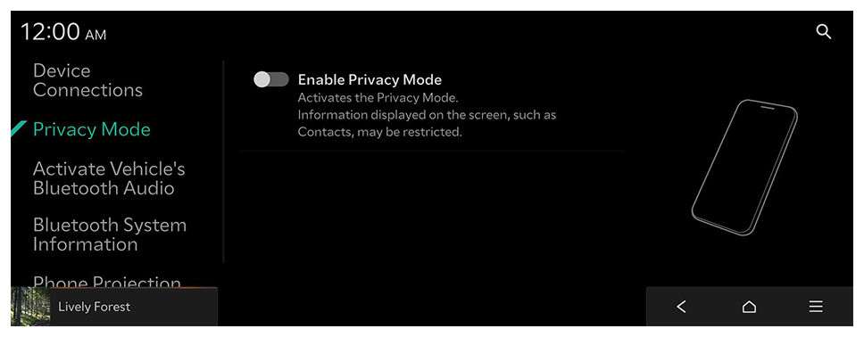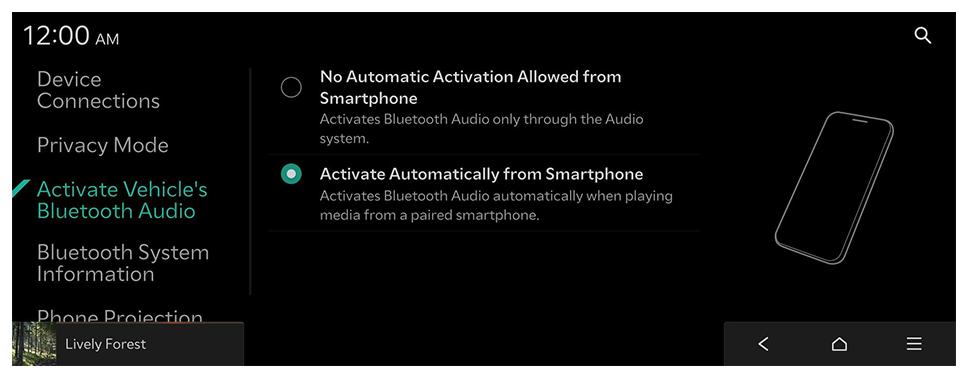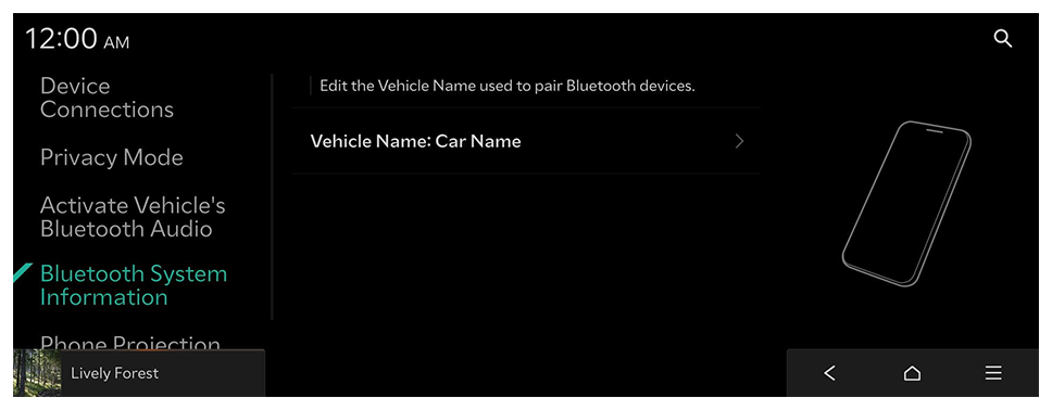 Manage Bluetooth devices or configure their operation settings. You can also activate the phone projection so that you can control the smartphone App from the system screen after connecting the smartphone to the system.
