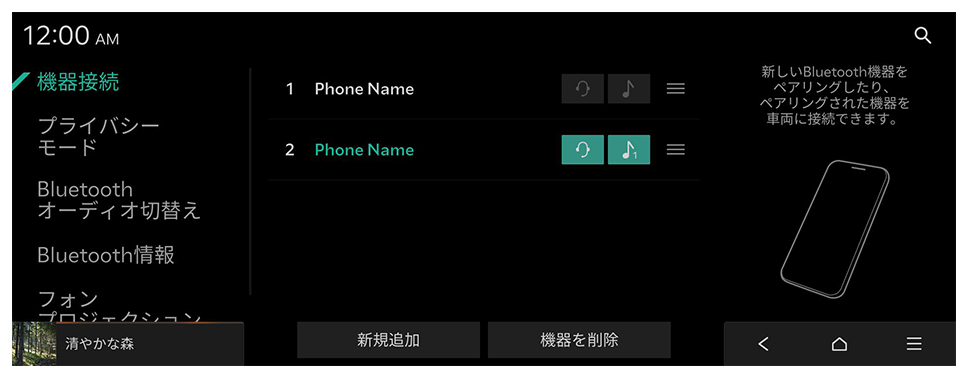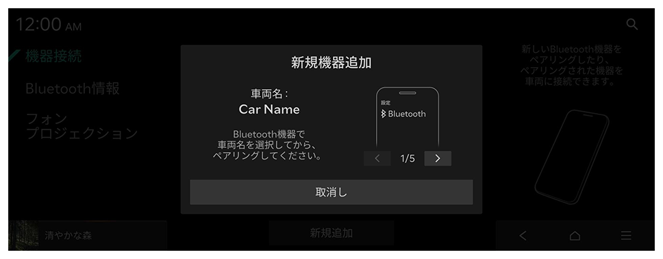 - Bluetooth機器リストに表示される車両名は、機器登録時に表示されるポップアップ画面で確認できます。