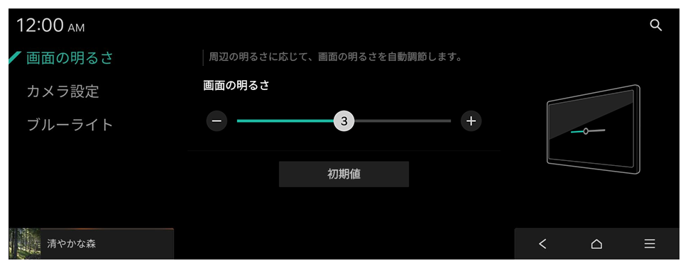 - 画面の明るさをすべて初期化するには、初期値を押します。