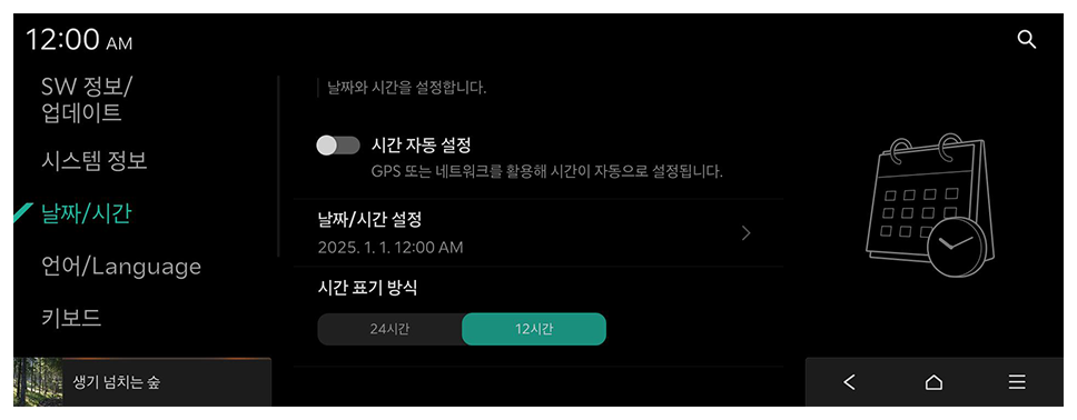 시스템 시간 표기 방식을 설정할 수 있습니다.
