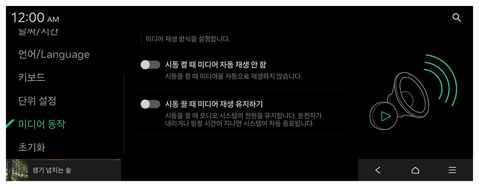 시동을 켤 때 미디어를 자동으로 재생하지 않습니다.