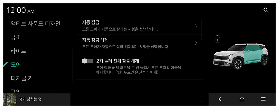 사이드 미러가 펴지는 시점과 퍼들 램프 또는 도어 핸들 램프가 켜지는 시점을 선택합니다.
