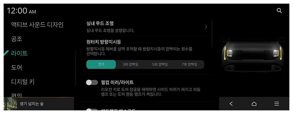 차량의 조명 사용 환경을 설정할 수 있습니다.
