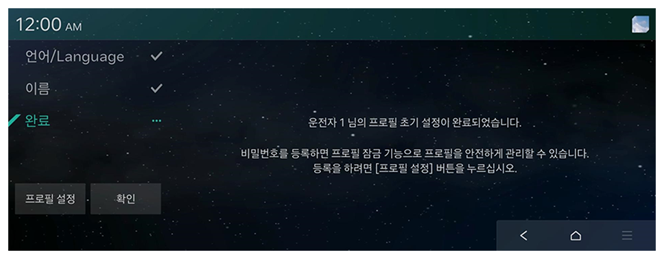 개인화 서비스를 이용하시려면, 프로필이 등록된 사용자가 필요합니다. 등록된 사용자가 없다면 아래의 안내를 통해 프로필 등록 후 Kia Connect 앱 계정과 차량 단말 계정을 연동하여 개인화 서비스를 이용해 보세요.