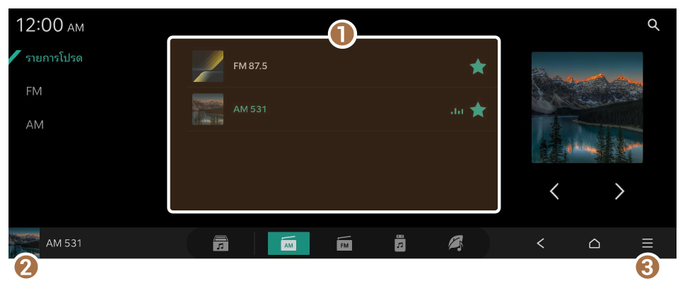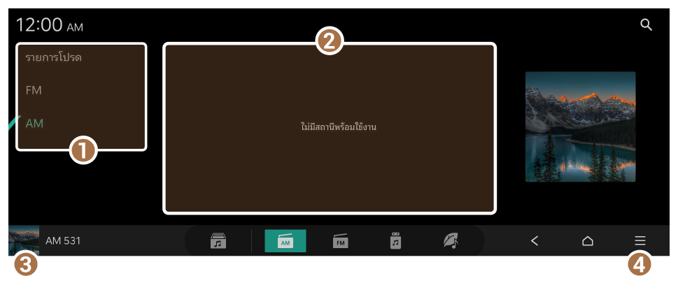 1. บนหน้าจอหลักสำหรับมีเดีย ให้กดที่ AM