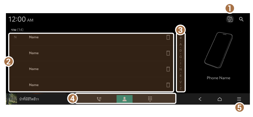 รายชื่อติดต่อที่บันทึกไว้บนโทรศัพท์มือถือของคุณจะถูกดาวน์โหลด คุณสามารถโทรออกโดยการเลือกรายชื่อติดต่อจากหน้าจอระบบ