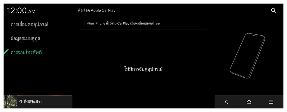 - เมื่อ iPhone เชื่อมต่อสำเร็จ การฉายโทรศัพท์ จะสลับเป็น Apple CarPlay บนหน้าจอหลัก หาก Apple CarPlay ไม่ปรากฏ ให้ลองเชื่อมต่ออีกครั้ง