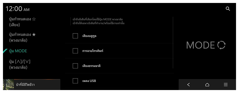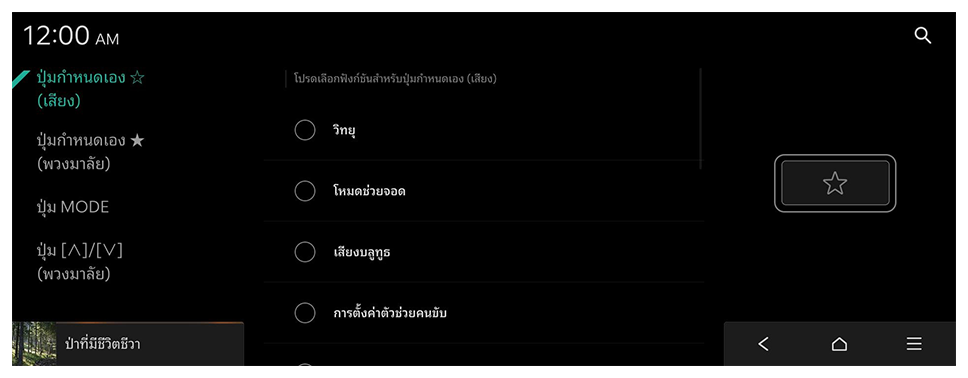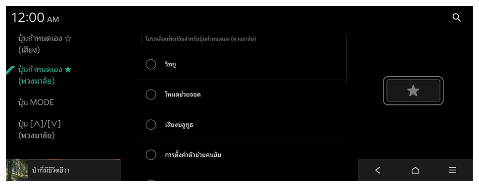 กำหนดค่าฟีเจอร์ที่จะทำงานเมื่อกดปุ่มต่างๆ บนแผงควบคุมหรือพวงมาลัย